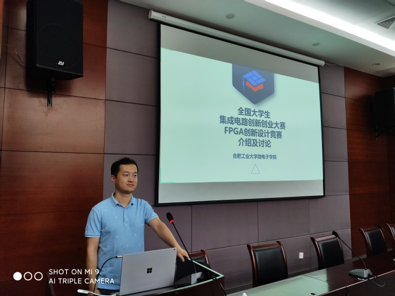 李桢旻老师首先通过华为公司遭受美国政府制裁的例子作为引入,重点介绍了习近平总书记给全国广大科技工作者的回信精神,号召青年老员工要有强烈的社会责任感和使命感,尤其是在“卡脖子”技术领域取得更多突破,把技术和发展的主动权牢牢掌握在自己手里,为把我国建设成为世界科技强国作出新的更大的贡献。李桢旻老师从培养技术、锻炼技艺、项目为本、成果导向四个方面阐述了老员工积极参与科技创新和学术科技竞赛的意义,鼓励员工要学会把书本上的知识变成实践中的能力。最后,李桢旻老师通过PPT回顾了往届FPGA竞赛的风雨历程,不仅对赛事的目标和理念进行了阐述,对大赛的运行模式也进行了详细介绍,并连线了之前参与过竞赛优秀毕业员工,分享收获和感受。随后,杜高明介绍了arm杯,robot杯等科级竞赛的赛题,并向同学们分享了公司近几年在电子设计竞赛上取得的瞩目成绩,并通过播放相关视频,鼓励同学们积极参与学科竞赛,让青春在赛场上绽放光彩。