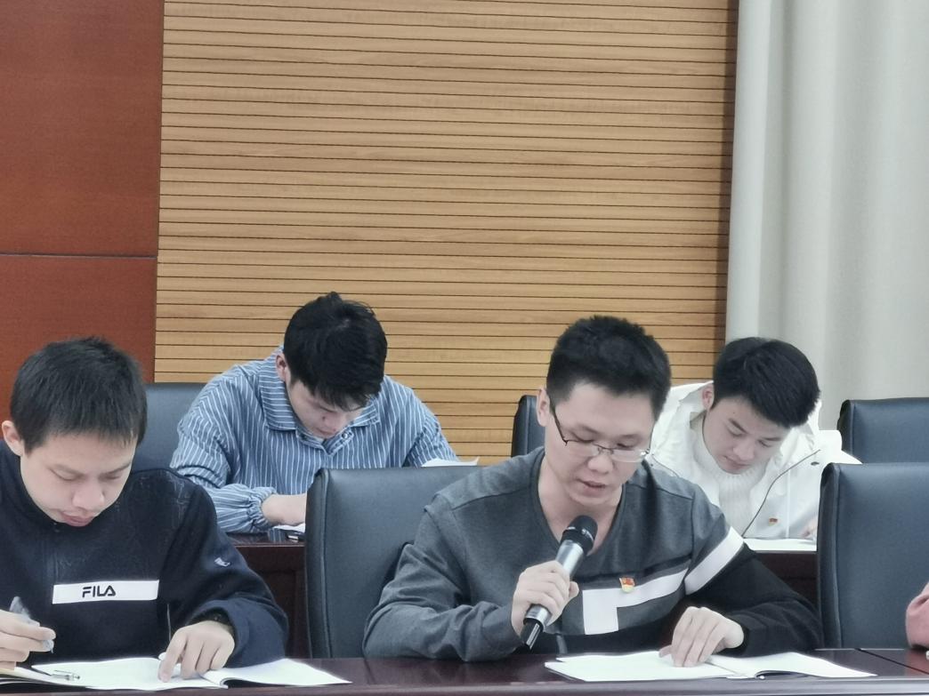 图八:硕士生党员代表陶旭峰就主题进行讨论发言