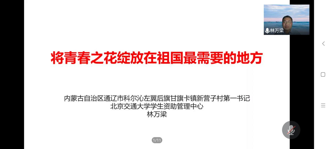 会议首先由北交老员工资助管理中心教师、现挂职内蒙古科尔沁左翼后旗甘旗卡镇新营子村第一书记的林万梁老师介绍他在扶贫第一线工作两年半的亲身经历,向两个支部的党员同志介绍了贫困地区的真实现状,国家对扶贫工作的具体细节,让大家接受了一次深刻的洗礼。