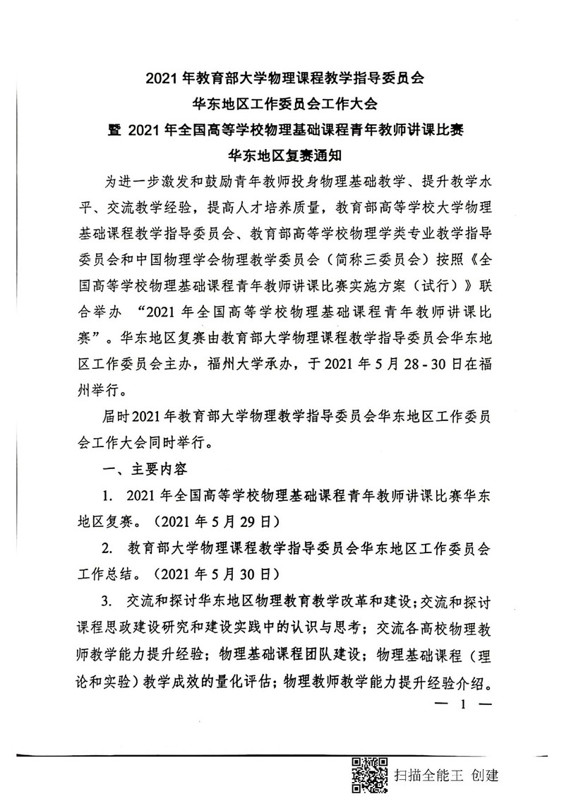 2021年教育部大学物理课程教学指导委员会华东地区工作委员会大会通知
