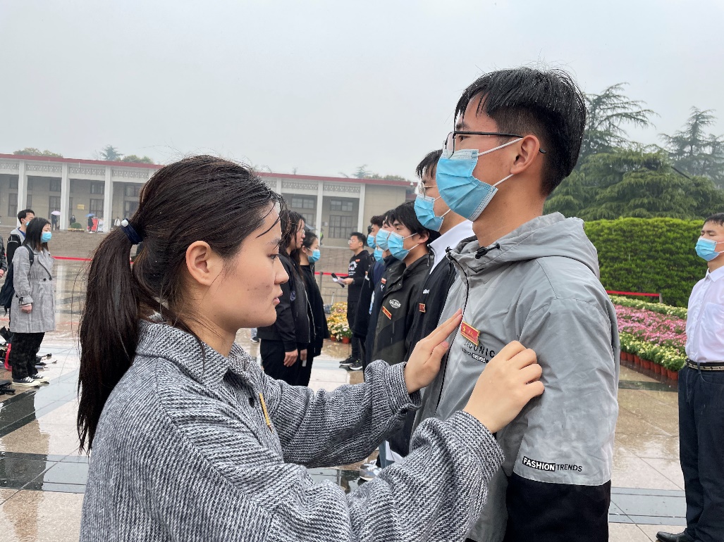 随后,面向烈士纪念碑,党支部组织举行了新党员入党宣誓仪式和党员身份亮化工程授牌仪式。党支部委员会成员依次为新发展员工党员们佩戴党员身份铭牌,亮明党员身份。全体党员举起右拳,面向党旗庄严宣誓,在领誓人的带领下进行庄严宣誓:“我宣誓,我志愿加入中国共产党……”,党徽如金、党旗似火、誓言铮铮,注视着纪念碑,全体同学高唱《国际歌》,让每位党员与百年前为党献身的先烈精神共振。