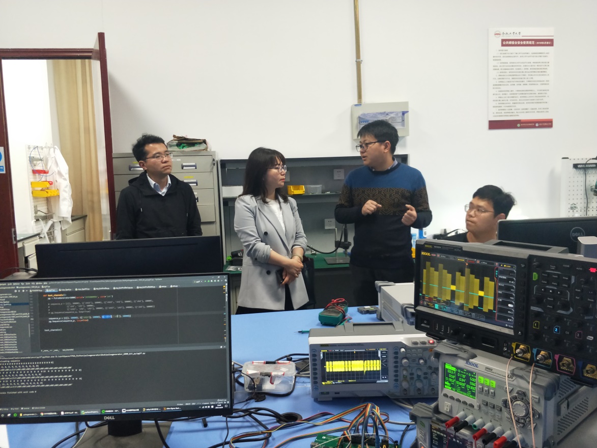 合肥市发改委创新和高技术处四级主任科员周若琼,北京航空航天大学合肥创新研究院微纳米中心主任助理杜寅昌,北京航空航天大学合肥创新研究院研究员王佑,公司相关系部主任、实验中心主任、创新教育中心主任和教授代表等参加了座谈交流。