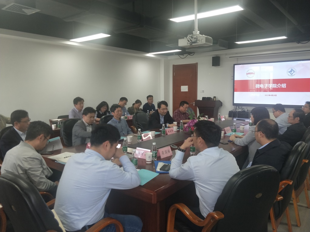 4月29日下午,合肥市发改委党组成员、副主任钱文,中国科学技术大学特聘教授陈军宁、北京航空航天大学合肥创新研究院执行经理梁国栋、北京航空航天大学集成电路公司副经理张悦等一行来院就集成电路人才培养工作进行专题调研。经理解光军、党委书记赵金华及其他领导班子成员等陪同调研。