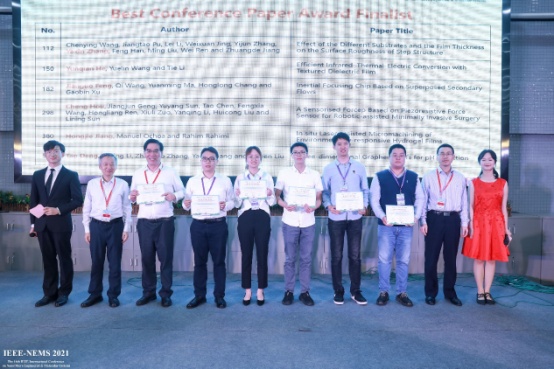 公司安徽省MEMS工程技术研究中心青年教师冯建国以“Inertial Focusing Chip Based On Superposed Secondary Flows”为题作大会报告,讲述了惯性微流控技术及其在微粒和细胞聚焦方面的应用。论文提出了一种基于增强型二次流的惯性聚焦微流控芯片,实现了对荧光微球和生物细胞的高效聚焦,该芯片有望应用于高灵敏度的细胞探测和分析以及即时诊断产品中。经过激烈的角逐,该成果最终获得了IEEE NEMS 2021最佳会议论文提名奖(6/530)。论文得到了国家重点研发计划项目、安徽省重点研发计划项目和安徽高校协同创新项目的支持。课题组硕士研究生杨朝晖和王琪参加本次学术会议。