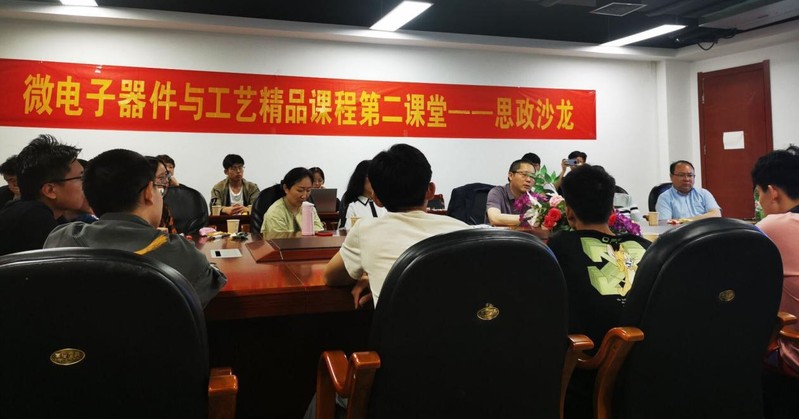 本次沙龙重点围绕《微电子器件与工艺基础》课程的专业发展、蕴涵的思政元素、与之相关的产业形势、就业状况,职业发展规划等诸多师生关心的话题进行研讨,通过自由和放松的方式与老员工进行互动和交流,对通过言传身教将育人目标有机融合在教学环节里,切实将课程思政的建设效果落到实处起到了积极的推动作用。