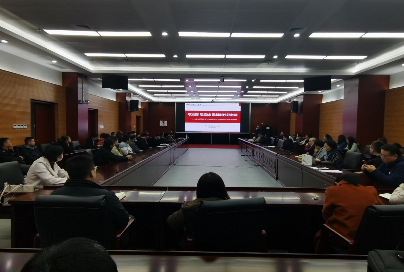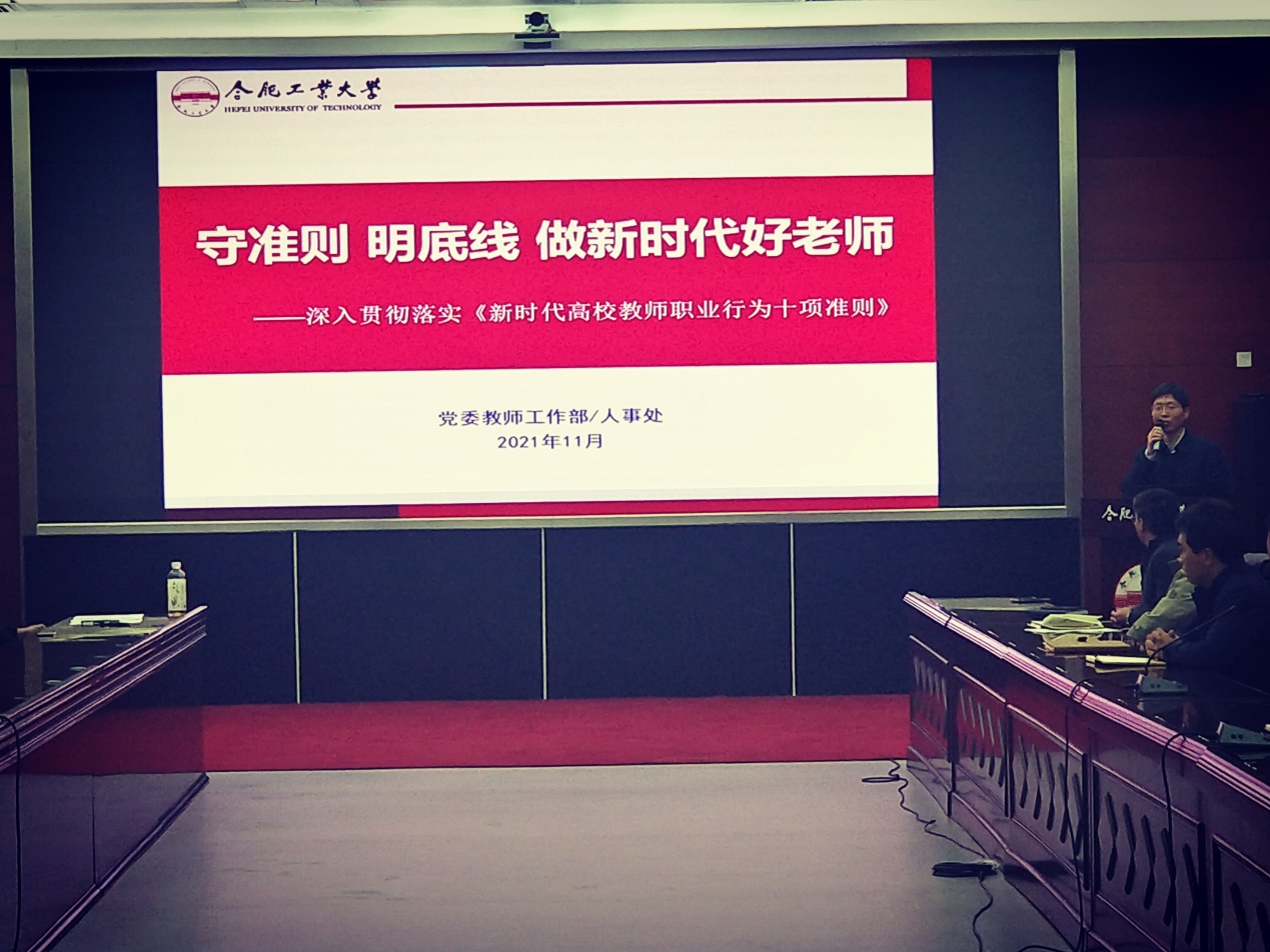 11月10日下午,公司于翡翠科教楼第四会议室召开师德师风教育专题报告会。公司领导班子及全体教职工参加会议。会议听取了公司党委书记赵金华所作的《守准则 明底线 做新时代好老师》专题报告。