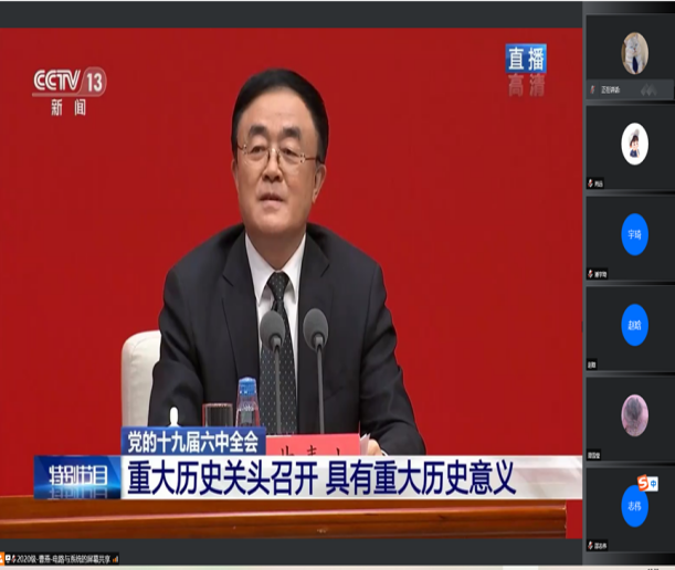 11月12日至18日,公司党组织广泛开展党的十九届六中全会精神学习。公司通过党委理论中心组学习、师生党支部线上线下相结合集体研学以及收看收听新闻发布会,认真学习领会全会精神,并结合工作和学习实际,畅谈心得体会。