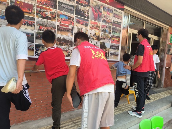 活动前,志愿者们认真响应疫情防控政策要求,核验安康码、行程码和疫苗接种情况,确保活动可以安全顺利展开。活动伊始,孩子们面对志愿者的到来似乎有一些拘谨和紧张,但随着党员志愿者的耐心陪伴,他们渐渐被志愿者的热情所感染,也逐渐开朗起来。语文课上党员志愿者一对一辅导孩子们完成老师布置的课堂作业,当遇到不会的问题或者有些许困惑时,党志愿者都会耐心地为他们讲解。体育课上,志愿者给孩子们示范横、跨、跑、跳等训练动作,帮助孩子们掌握有利于提升身体协调性的动作,一次次的搀扶与细心的教导,孩子们也越来越愿意同志愿者沟通。同时在篮球课上,志愿者陪伴孩子们完成了快速拍球、相互传递、胯下手递手运球等训练动作,不仅丰富了孩子们的课程内容,同时也让孩子们在志愿者的陪伴中收获喜悦于欢乐。