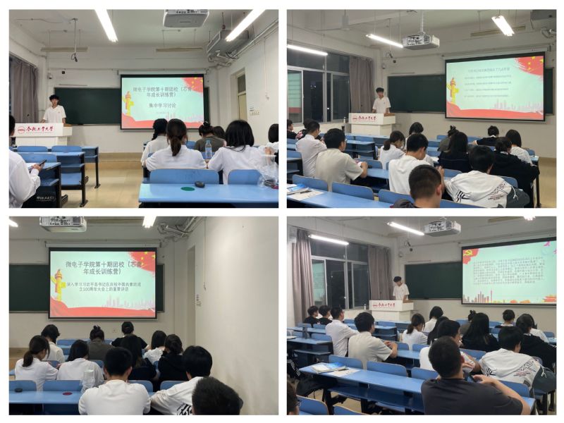 会上,学员们按照分组,围绕习近平总书记在中国人民大学考察时的重要讲话、习近平总书记在庆祝中国共青团成立100周年大会上的重要讲话、《中国共产主义青年团章程》、《新时代的中国青年》白皮书、《中国共产主义青年团团员教育管理工作条例(试行)》多个主题展开学习研讨,畅所欲言。微电子21-2班王欣同学说到:“作为新时代青年老员工团员,我们必须坚定不移听党话、跟党走,在团支部的带领下,立足于新时代新征程,将个人奋斗目标和祖国发展前途命运紧密联系在一起,不负总书记的殷切期望,努力成长为堪当民族复兴重任的时代新人。”