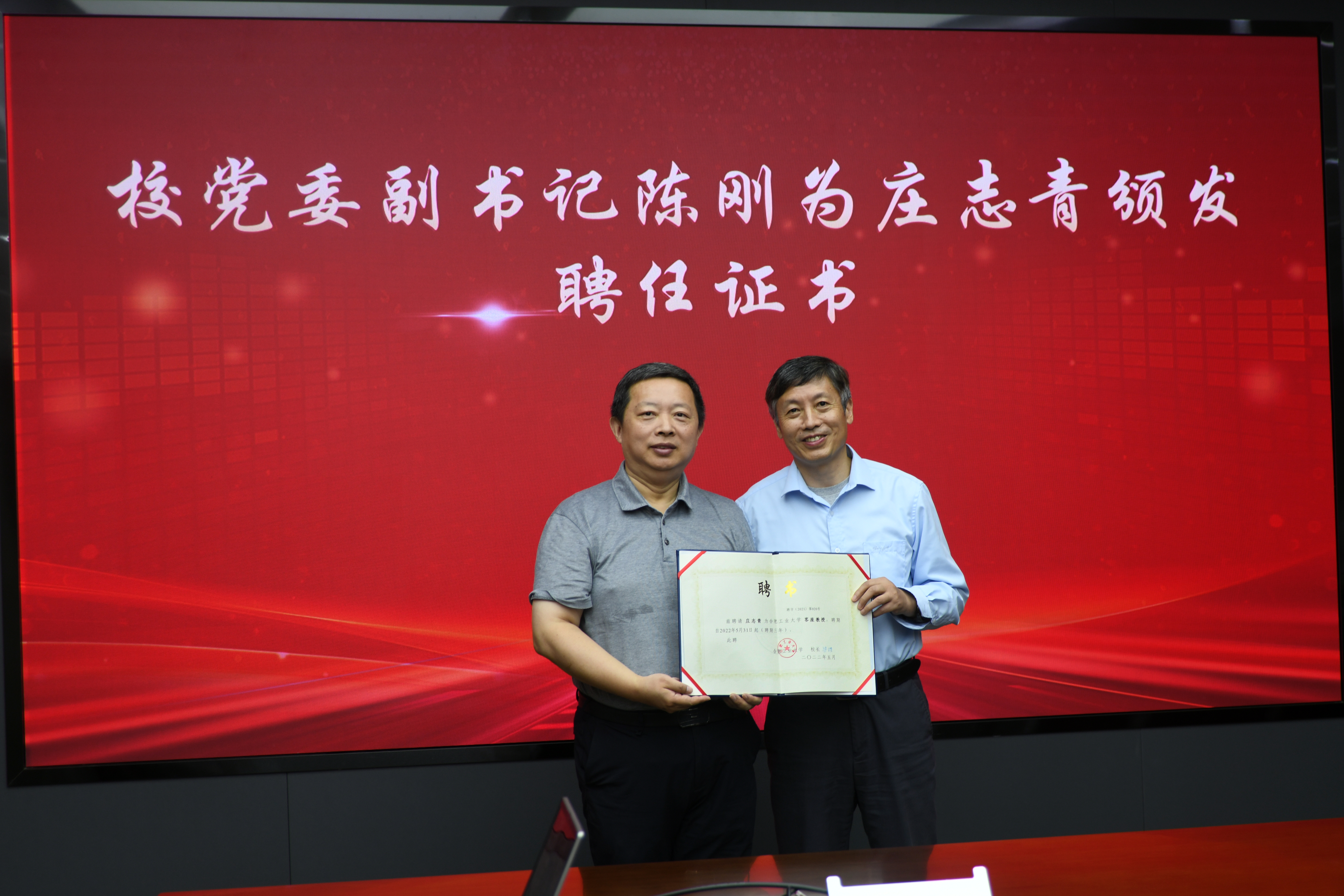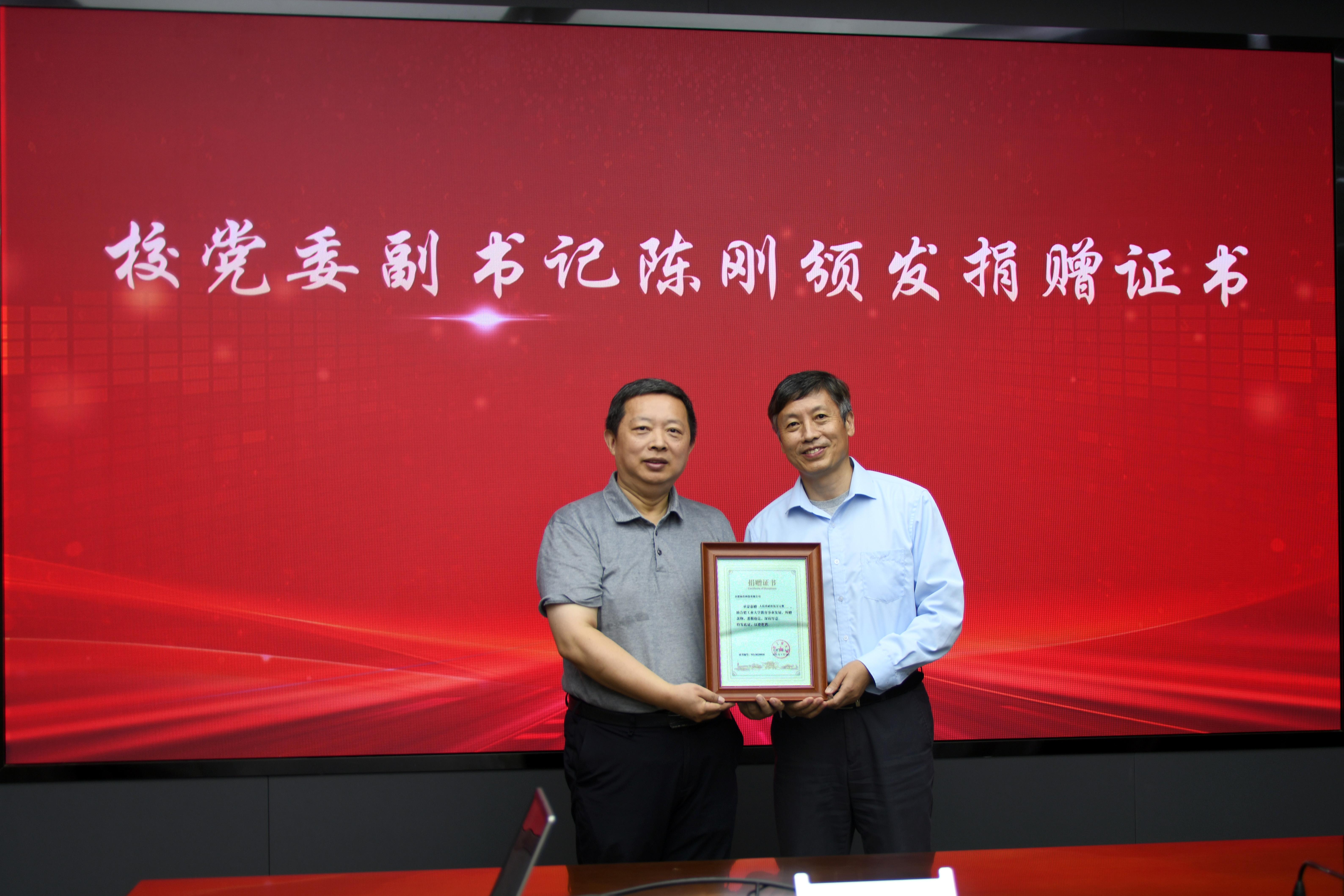 7月28日上午,合肥灿芯科技有限公司董事长庄志青兼职教授聘任暨捐赠仪式在学术会议中心举行。公司党委副书记陈刚出席仪式并为庄志青博士颁发聘书及捐赠证书。