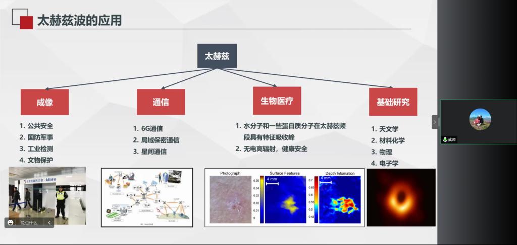 中国科学技术大学武帅研究员从太赫兹波的产生和特点、太赫兹成像理论的发展和太赫兹基础元器件、太赫兹成像的几种主要机制等方面,探讨了基于被动式太赫兹成像原理的成像系统和应用,就被动式太赫兹成像技术在安检安防领域的应用进展做了重点介绍,并与公司师生进行了线上交流。