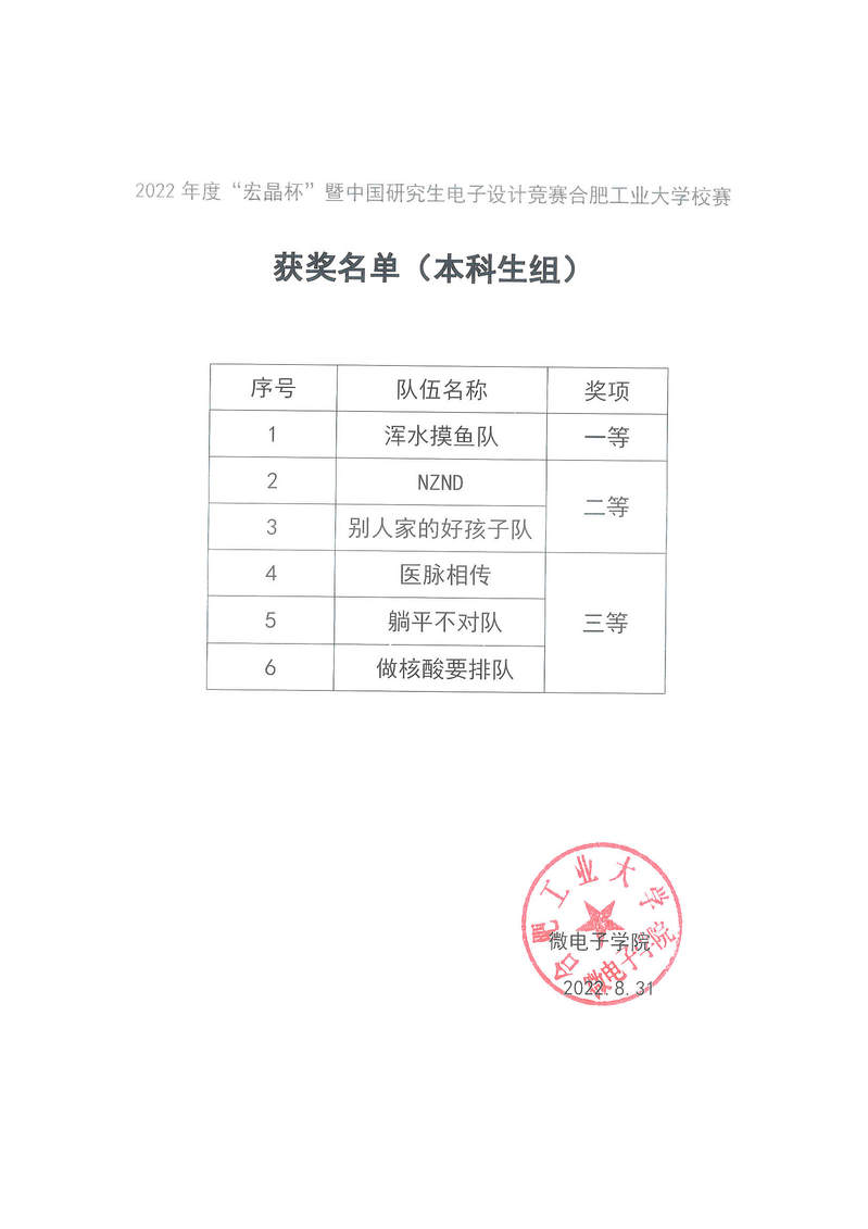 2022年度“宏晶杯”暨中国研究生电子设计竞赛TapTap点点官方网站校赛获奖名单