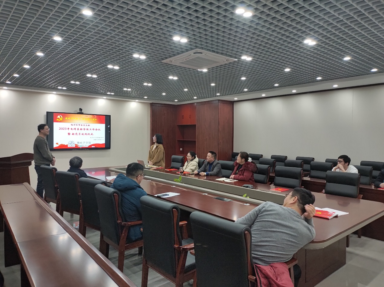 3月1日下午,电子科学系党支部在翡翠科教楼B座四楼中庭会议室召开了本学期工作会议暨新党员欢迎仪式,欢迎今年党支部新进党员刘波同志。许高斌经理出席了会议。