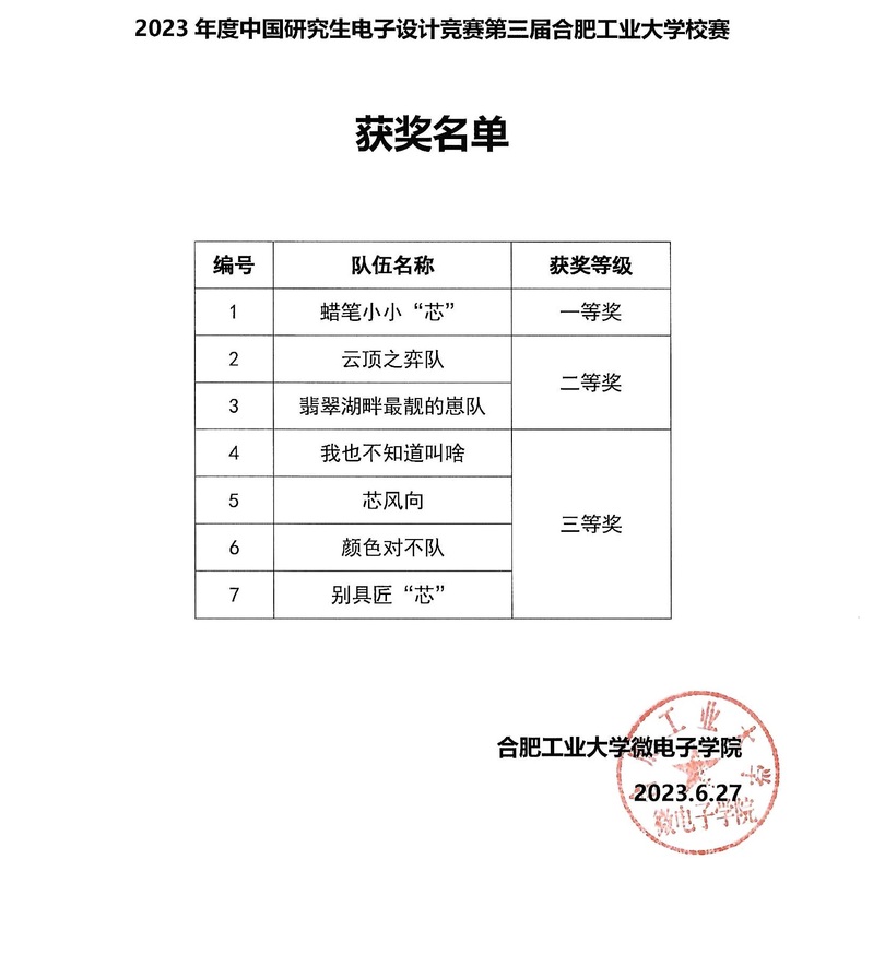 2023年度中国研究生电子设计竞赛第三届TapTap点点官方网站校赛获奖名单