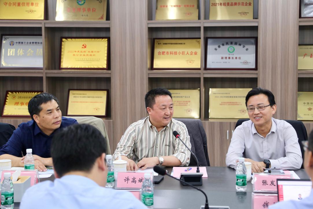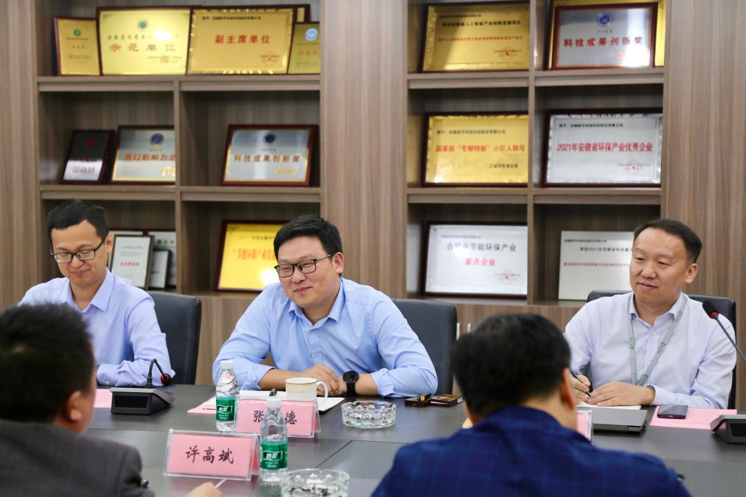 10月26日下午,由公司科研副经理许高斌教授、公司党委副书记张发宇带队,集电系主任杜高明教授、电科系吴春艳教授、冯建国老师等一行,受邀前往安徽新宇环保科技股份有限公司(以下简称“新宇科技”)开展调研考察活动并进行座谈。