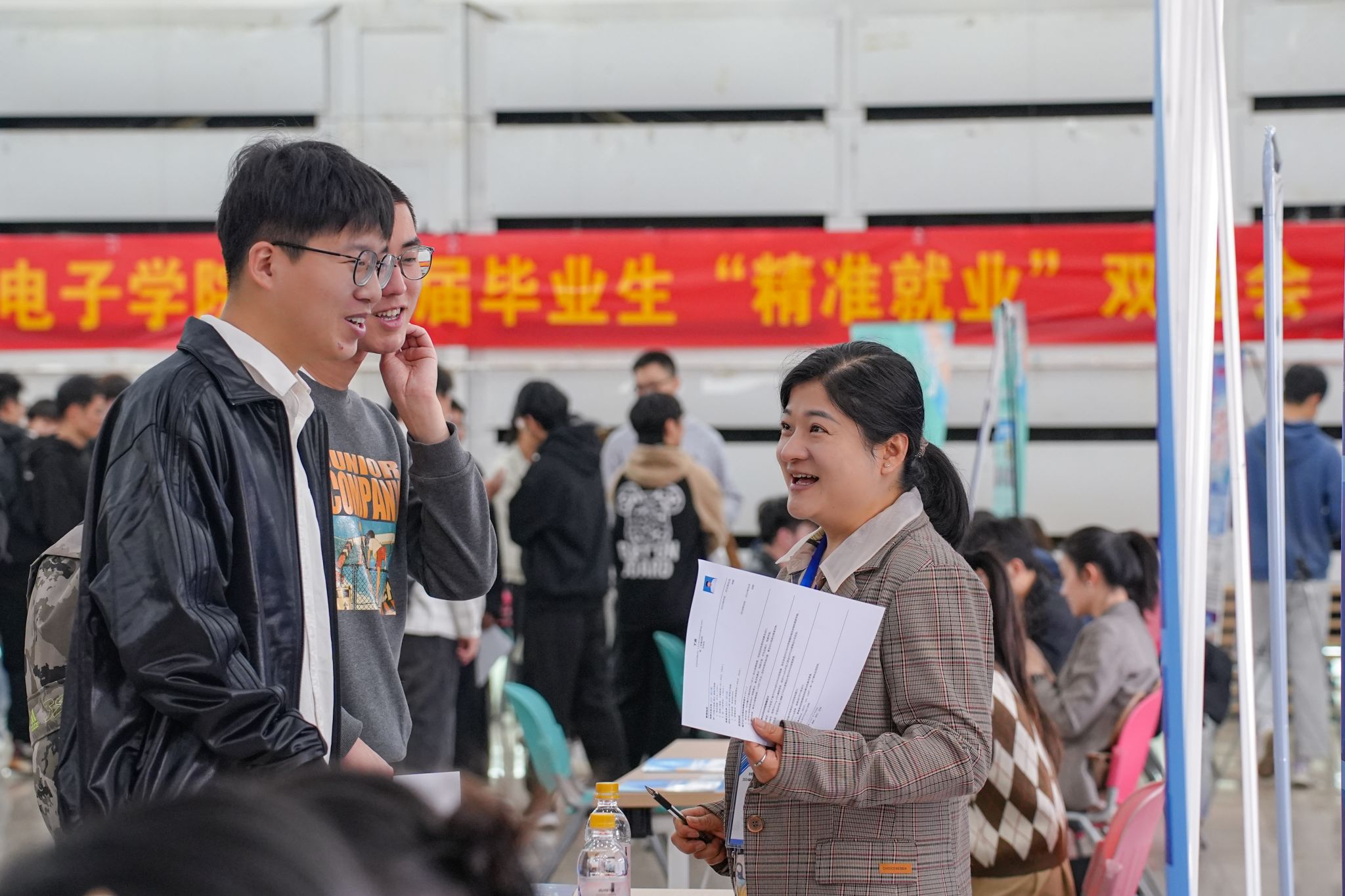 参加此次双选会的有联发科技(合肥)有限公司、中国兵器微电子研究(214所)、无锡中微爱芯电子有限公司合肥分公司、北京奕斯伟计算技术股份有限公司等21家企业。双选会现场,公司老师与参会企业、毕业生深入交谈,详细了解用人单位人才需求情况,鼓励求职员工把握就业机会。各用人单位通过海报展示、现场答疑、互动交流等方式向同学们介绍招聘情况。2024届毕业生围绕岗位需求、薪资待遇、职业发展等向招聘单位作详细咨询。双选会现场互动频繁、气氛热烈。