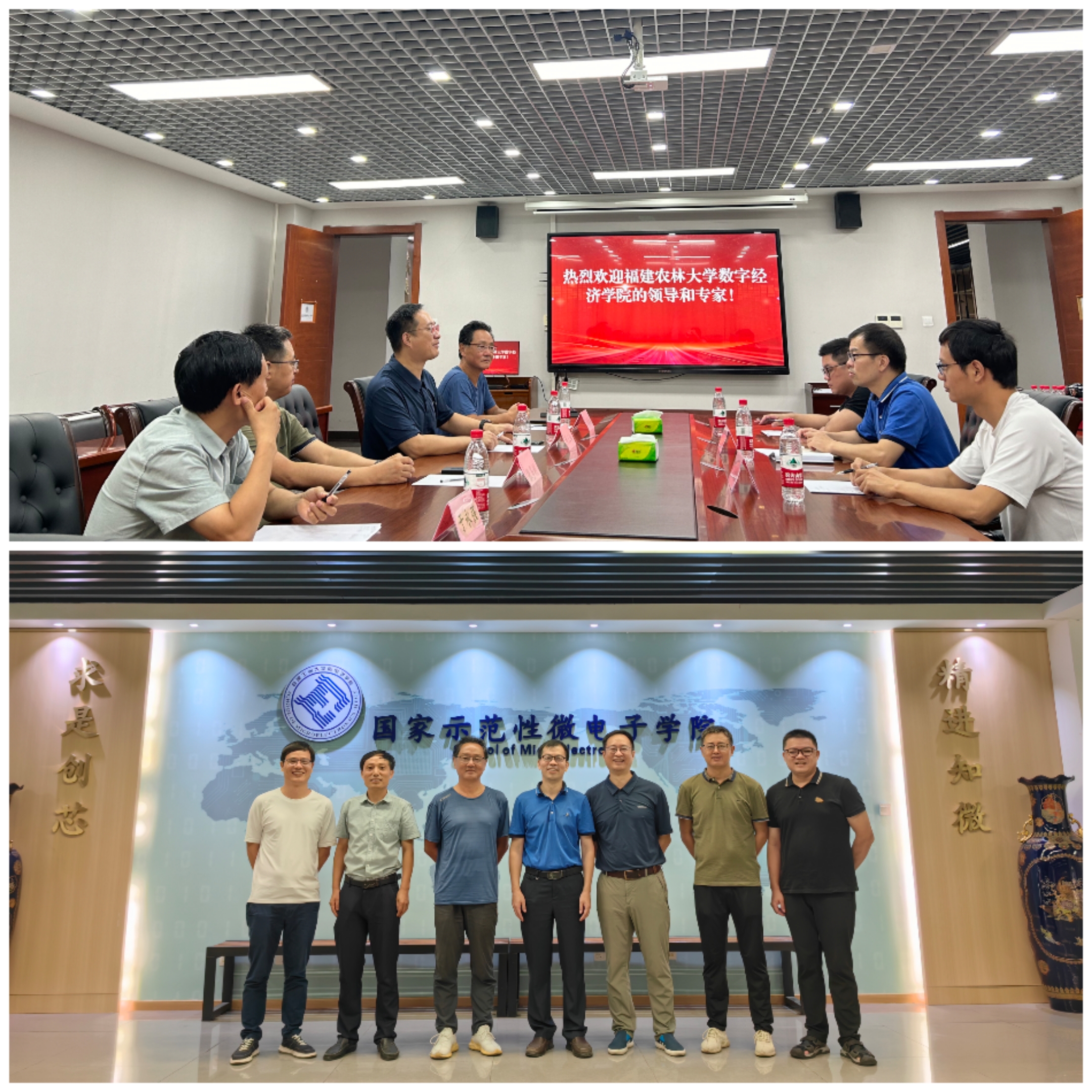 8月13日上午,福建农林大学数字经济公司吴义炳副经理、陈辉荣主任、冯新凯老师来公司交流座谈。会议在翡翠科教楼A座1712举行,参与交流的包括黄正峰副经理、安徽省专用系统芯片集成技术工程研究中心主任张多利教授、办公室主任刘继春、电科系副主任于永强。
