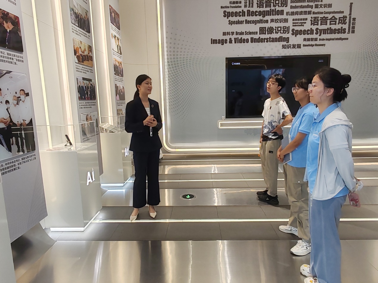 八月六号上午,实践团队抵达科大讯飞总部的人工智能体验馆,学习了解科大讯飞的科技产品。从此次参观中,实践团队深刻体会人工智能在教育,医疗,行政工作等等方面的影响,也了解到科大讯飞为中国人工智能发展做出的卓越贡献。实践团队也从中领悟到,将来无论是什么产业,都需要深入学习计算机相关的知识,顺应人工智能为各个产业赋能的时代潮流。