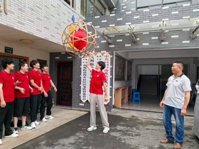 实践团队首站走进西安社区的余杭滚灯展览馆,在街道负责人的讲解中,了解了滚灯的前世今生。起源于翁梅乡的余杭滚灯,于 2006 年被列入第一批国家级非物质文化遗产名录。馆内丰富的民俗影像资料、精巧的滚灯模型及滚灯制作图谱,系统展示了这项源于南宋、盛于明清的民间艺术的发展脉络,让团队成员对这项非遗形成了立体认知。