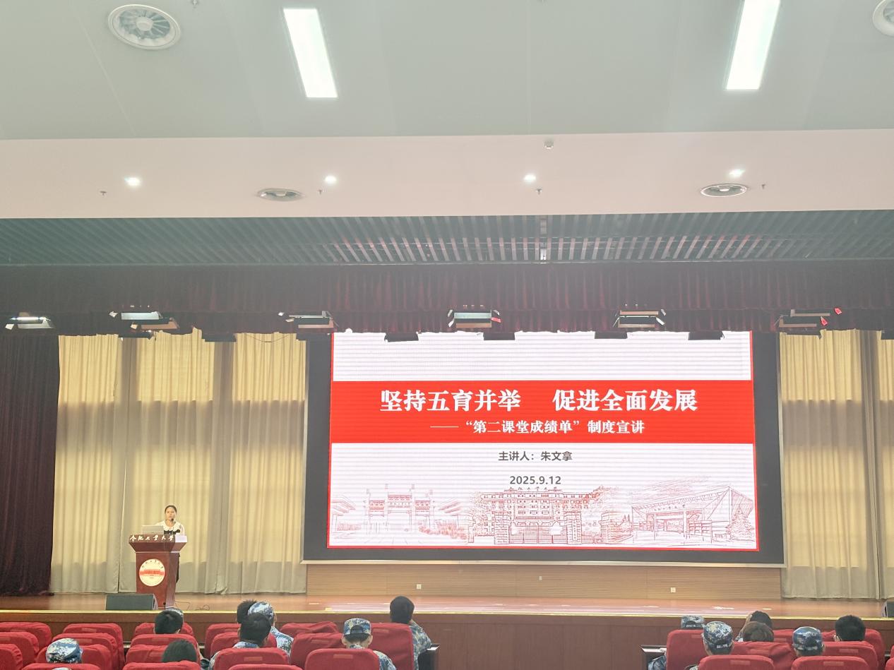 9月12日,公司于翡翠湖科教楼A座二楼报告厅举办了以“坚持五育并举 促进全面发展”为主题的“第二课堂成绩单”制度宣讲讲座。公司团委书记朱文拿老师主讲,2025级全体新生参加了该场讲座。