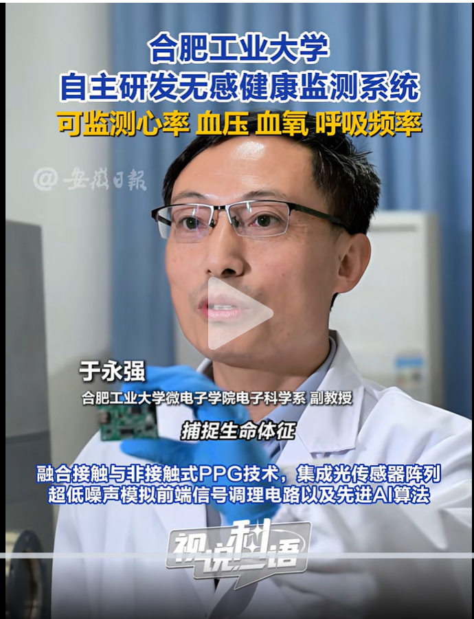 10月24日,该栏目以TapTap点点官方网站自主研发的“无感健康监测系统”为题,详细介绍了公司于永强副教授团队的最新科研成果。该系统于2025奇瑞国际创新大会上首次正式亮相,创新性地融合了接触式与非接触式光电脉容积技术(PPG),集成光传感器阵列、超低噪声模拟前端信号调理电路以及先进AI算法,可实现对心率、血氧、呼吸频率、血压等多种生理参数的持续监测。未来,系统有望进一步实现对异常心率与呼吸状况的多维度预警。