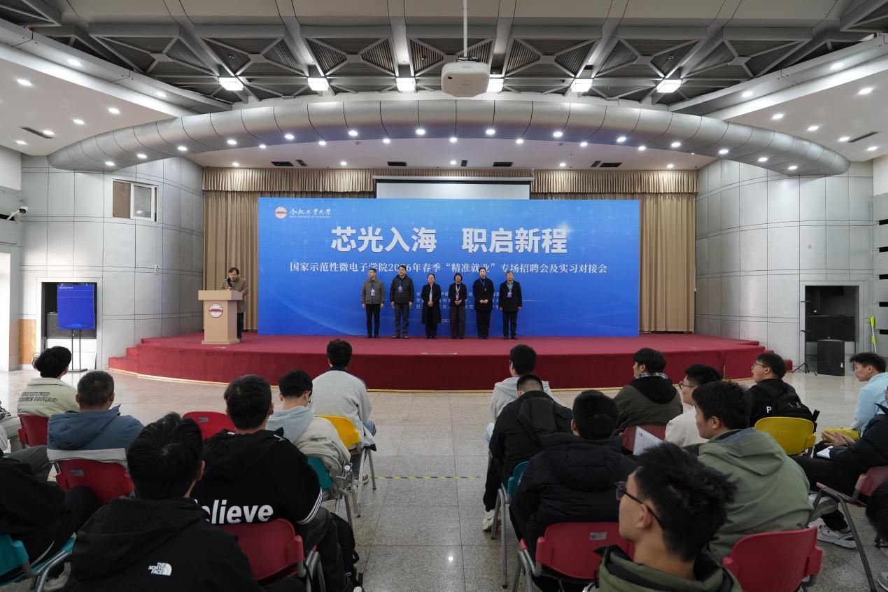3月20日下午,由安徽省工业和信息化厅和公司联合主办,招生与就业处和我院承办的2026年春季“芯光入海·职启新程”精准就业专场招聘会及实习对接会在翡翠湖校区综合楼301报告厅顺利举行。